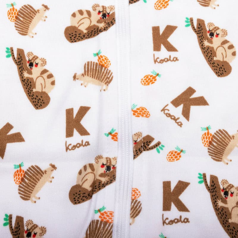This bamboo long sleeve onesie features a cute koala print, enclosed feet, and featuring a zip front opening for easy dressing and a protective zip cover so your baby’s skin stays safe, this onesie is easy to wear and wash. Wonderfully super soft and comfortable for your baby to wear all day and all night long, this great garment has some fantastic benefits.
